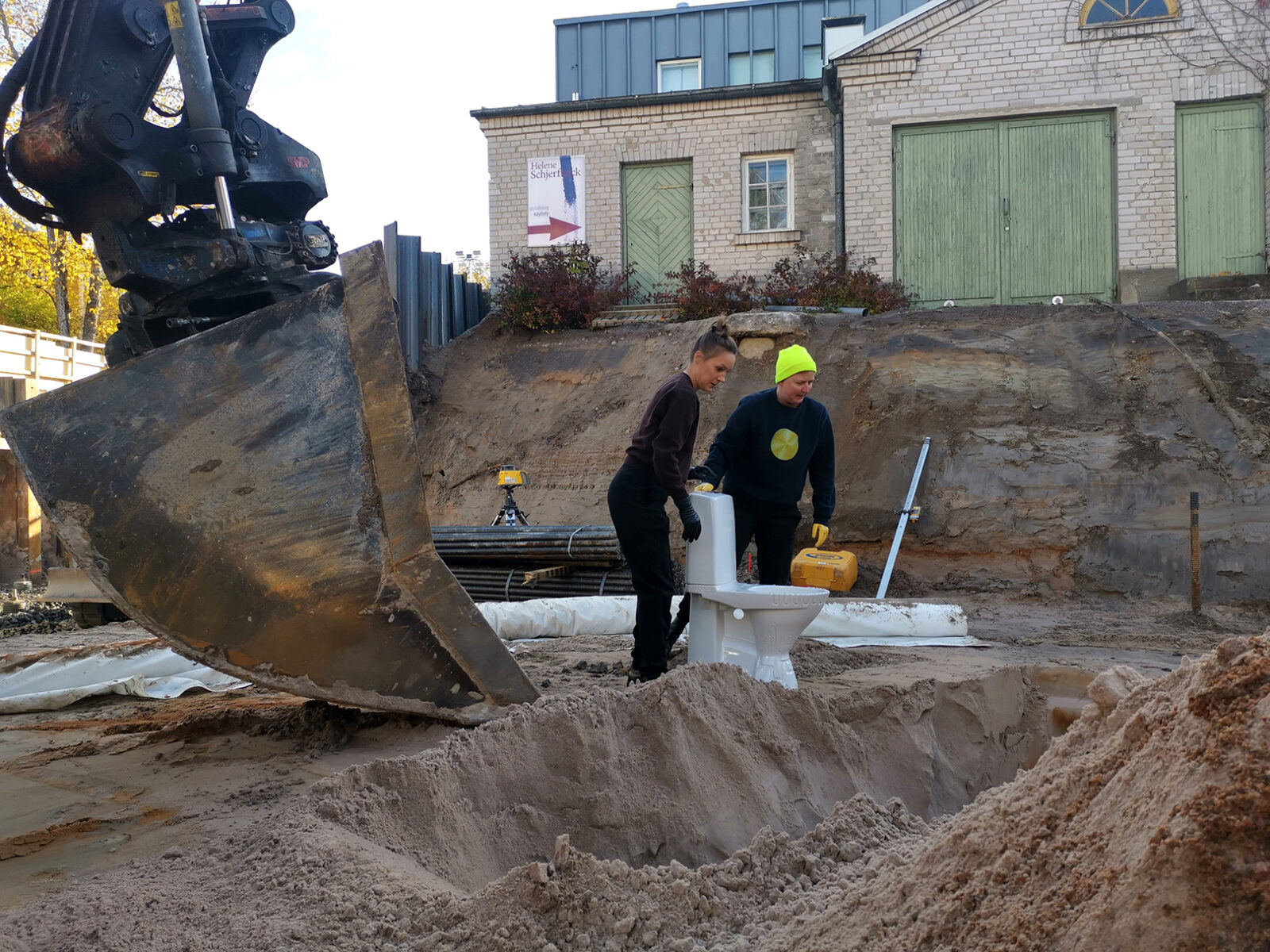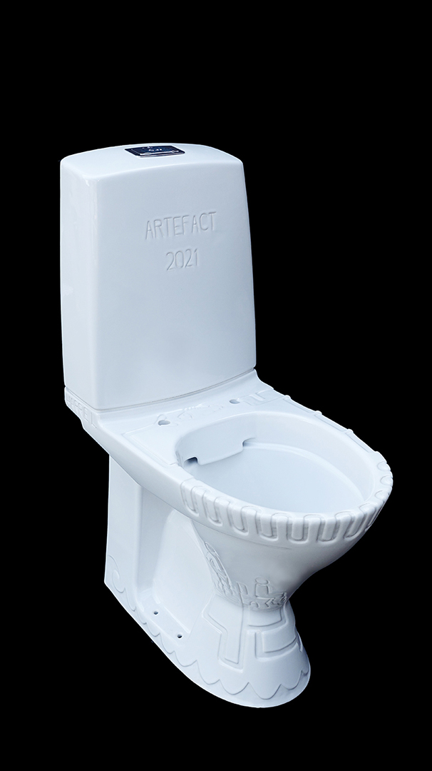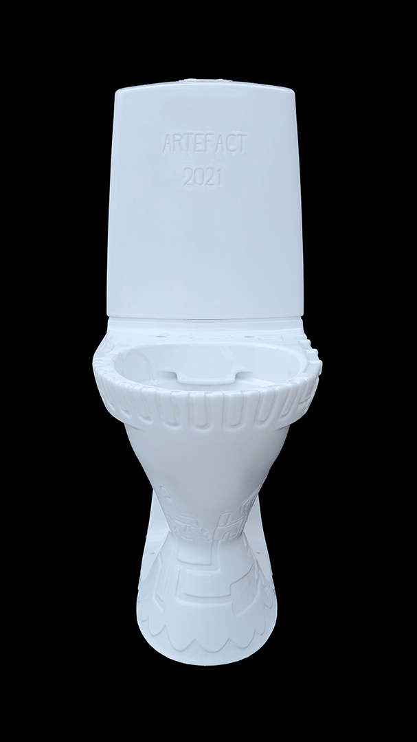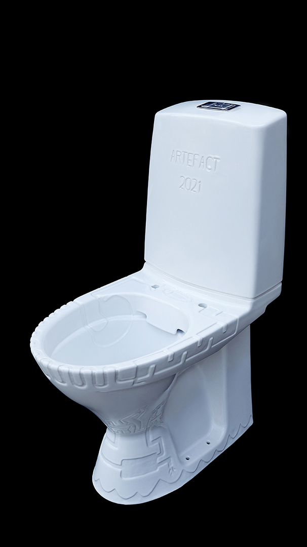 As a message to fill the gap of excrements for future archaeologists, Harrie Liveart produced a porcelain sculpture in the form of a water toilet, engraved with visualisations of the everyday toilet ritual. This sculpture is now buried under the Chappe museum
