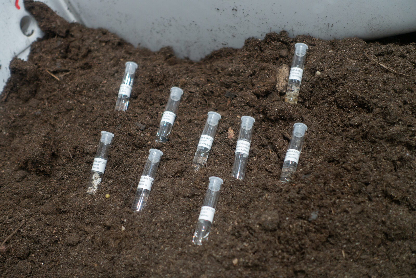 Harrie Liveart together with archeologists and an art historian discussed the significance of the water closet for future archeology. The starting point of this processual artwork was a pile of excrement found under a decommissioned privy in Tammisaari, Finland. A sample taken from this pile was analysed in a laboratory. Seeds from seven different species, whereof one unidentified, were found in the dregs together with fish scales and insect pupas. The unidentified seed became the protagonist of a performance story where the seed intertwines with three different temporalities: past, present and future.